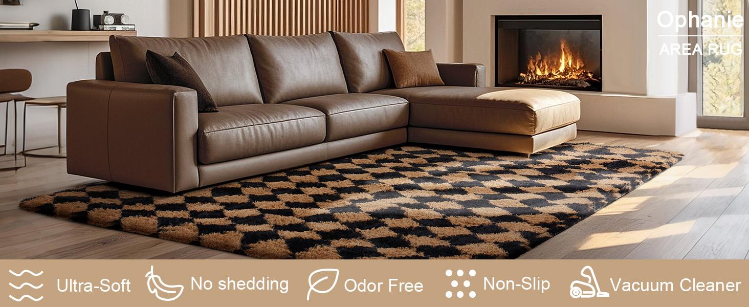 Area rug for living room, 8x10 plush carpet, Geometric pattern rug, Soft nursery rug, Elegant home décor carpet, Luxury bedroom rug, Kids and teen friendly rug, Ophanie checkered area rug, Plush floor covering décor, Comfortable stylish rug