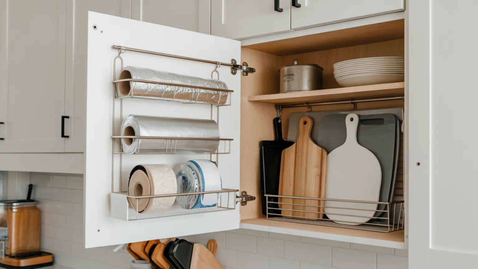 - Over-the-Door Racks: Utilize cabinet doors for spices or cleaning supplies.